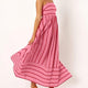 Women's Striped Back Smocked Spaghetti Strap Cut Out Swing Maxi Dress