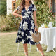 Women's Summer Short Sleeve V-Neck Floral Short Party Dress with Pockets